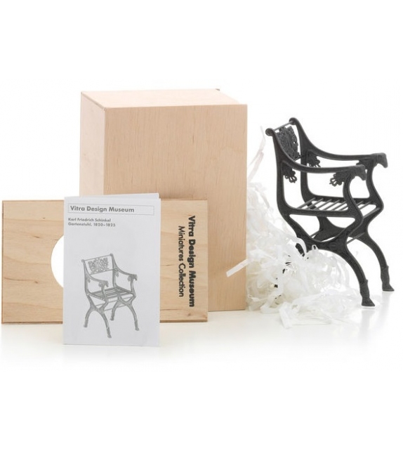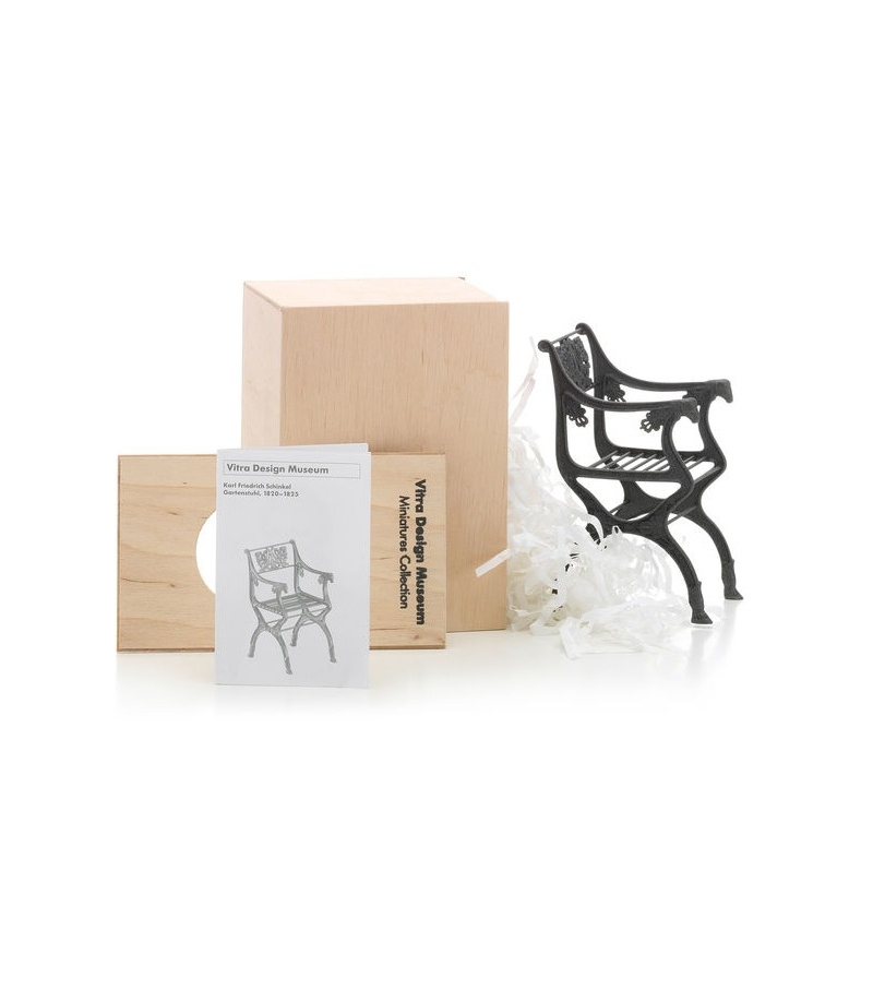 Vitra Miniatures Gartenstuhl, Schinkel: Michael Thonet fece numerosi esperimenti sull'uso del ferro e aveva portato importanti innovazioni in questo campo. Già nel 1736 un produttore di armamenti fondata dallo zar Pietro il Grande ha iniziato a produrre grandi quantità di mobili in ghisa. Karl Friedrich Schinkel, un prussiano capomastro, usò la ghisa per la razionalizzare e la produzione di mobili. Era un lavoro di architettura di Schinkel, in particolare, che gli valse la reputazione di uno dei maggiori esponenti di lingua tedesca del classicismo, ma il suo lavoro come designer di mobili è anche di grande importanza.