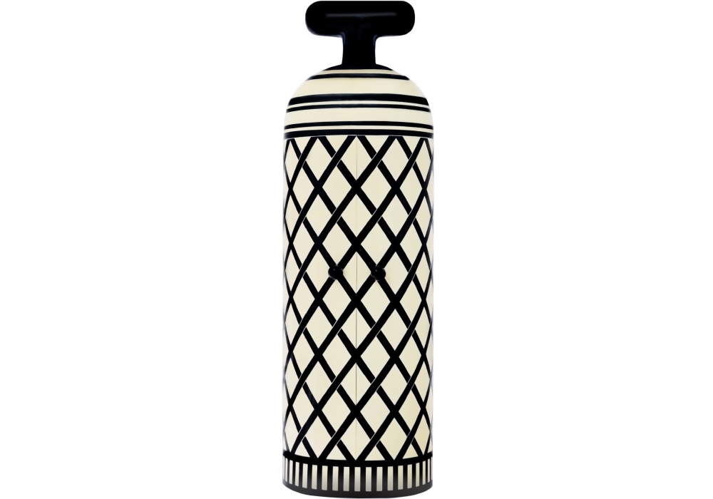 Monsieur Verdoux firmato da Matteo Cibic per Scarlet Splendour èp un mobile bar realizzato in MDF, compensato e legno di teak con intarsio in resina.