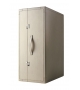 Isidoro Poltrona Frau: Il mobiletto da bar è strutturato come un baule su ruote con maniglia esterna e chiusure a scatto. All'interno vani portabicchieri, portabottiglie e una mensola ribaltabile come piano di lavoro. Struttura esterna in multistrato di pioppo.Mensole, sportelli e cassetti hanno un'impiallacciatura esterna in essenza di noce Canaletto (29) con interno in multistrato di pioppo e pannello di particelle in legno. Gli accessori sono in metallo cromato. Il rivestimento esterno è in cuoio Saddle. Una tela stampata decora le pareti interne del mobile.