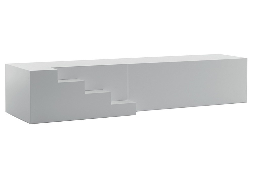 Mezzanino firmato da Mist-o per Mogg è un mobile TV con 1 anta a ribalta, completo di 1 ripiano interno e foro passacavi.
