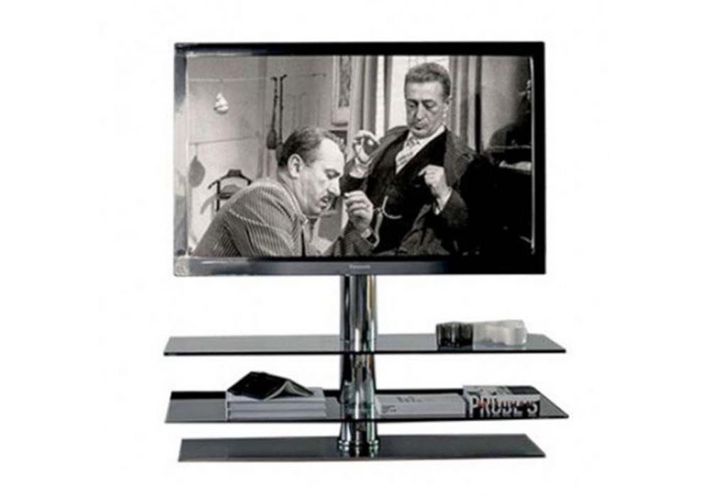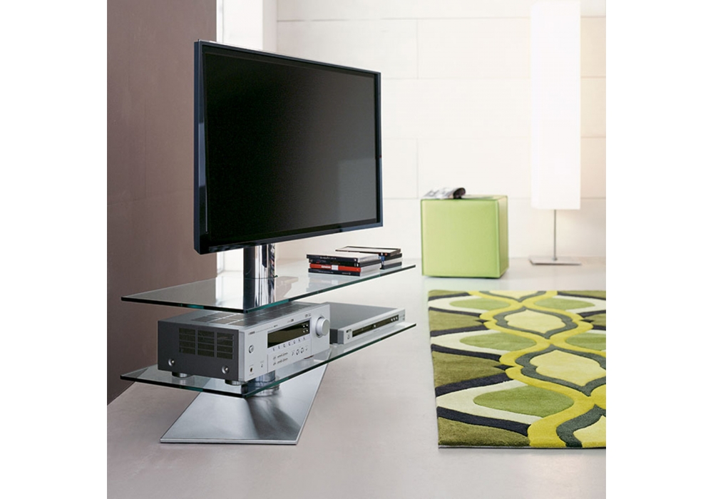 Vision firmato da Emanuele Zenere per Cattelan Italia è un porta TV girevole con struttura cromata e base in acciaio inossidabile. Ripiani in cristallo trasparente. Con passacavi. Portata massima per TV: kg 40; ripiani in cristallo kg 10 distribuiti.