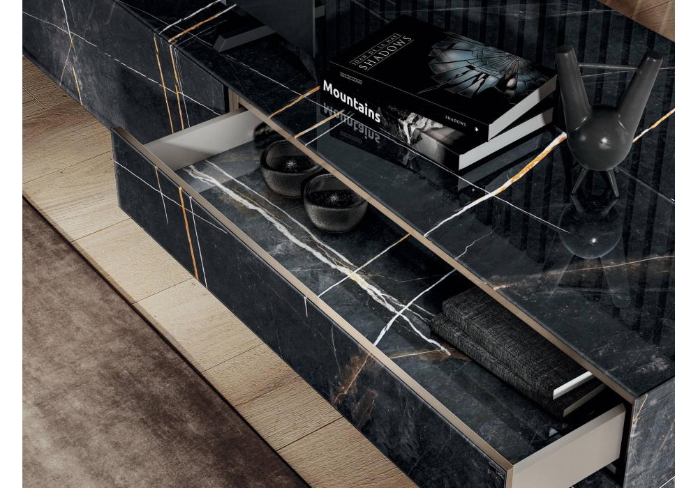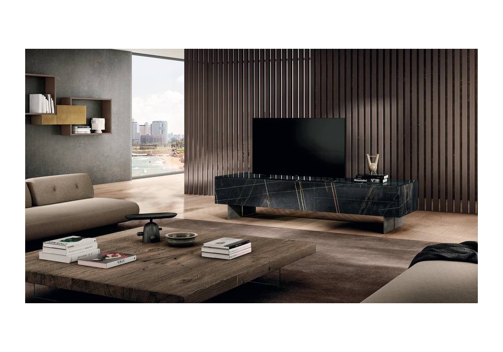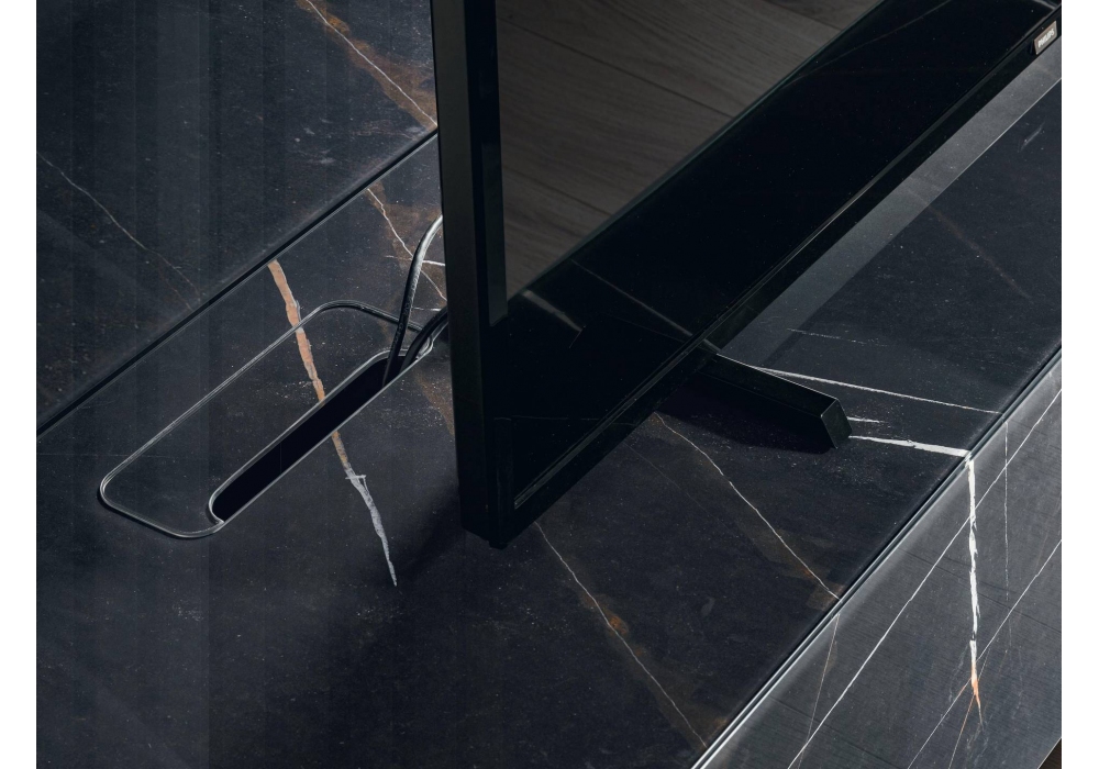 36e8 firmato da Daniele Lago è un porta tv personalizzabile nelle dimensioni, nella forma e nel colore. È disponibile in vetro o xglass.