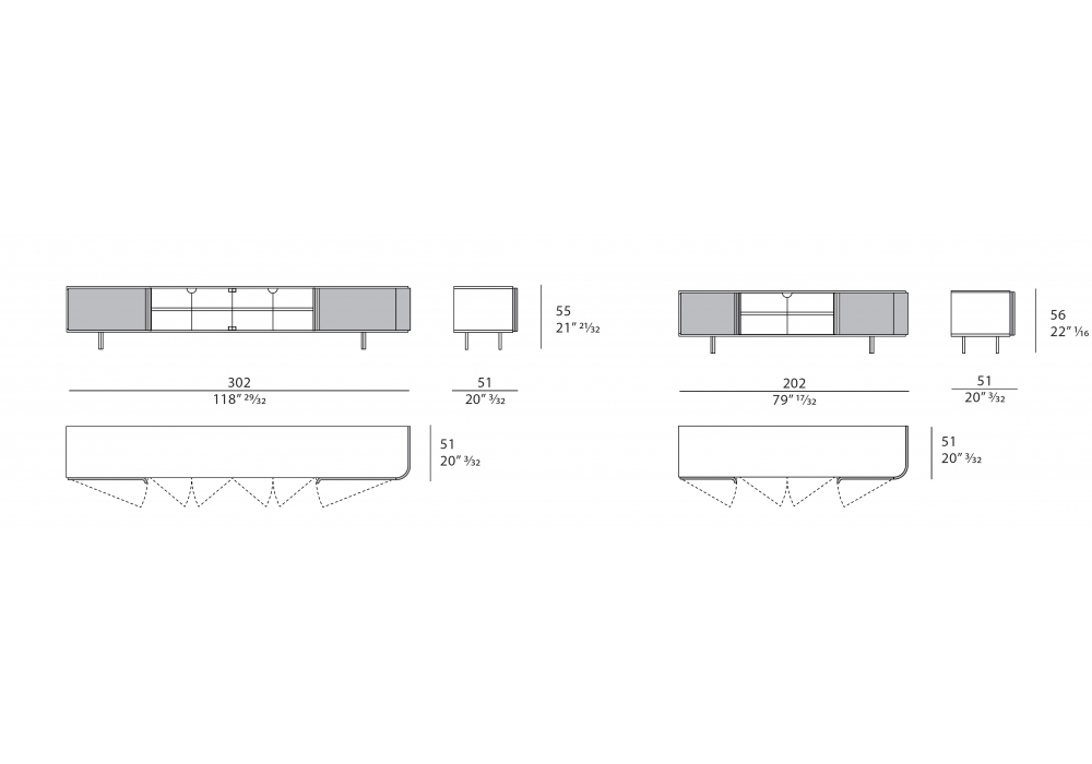 | Dimensioni | 302 x 51 x H 55 cm; 202 x 51 x H 56 cm. |