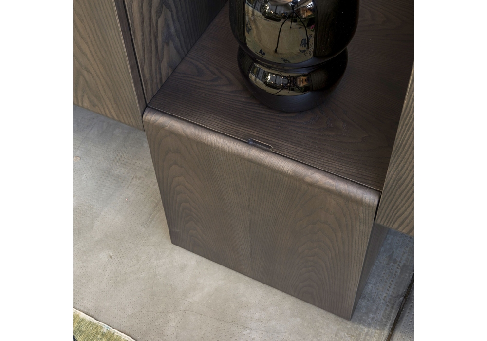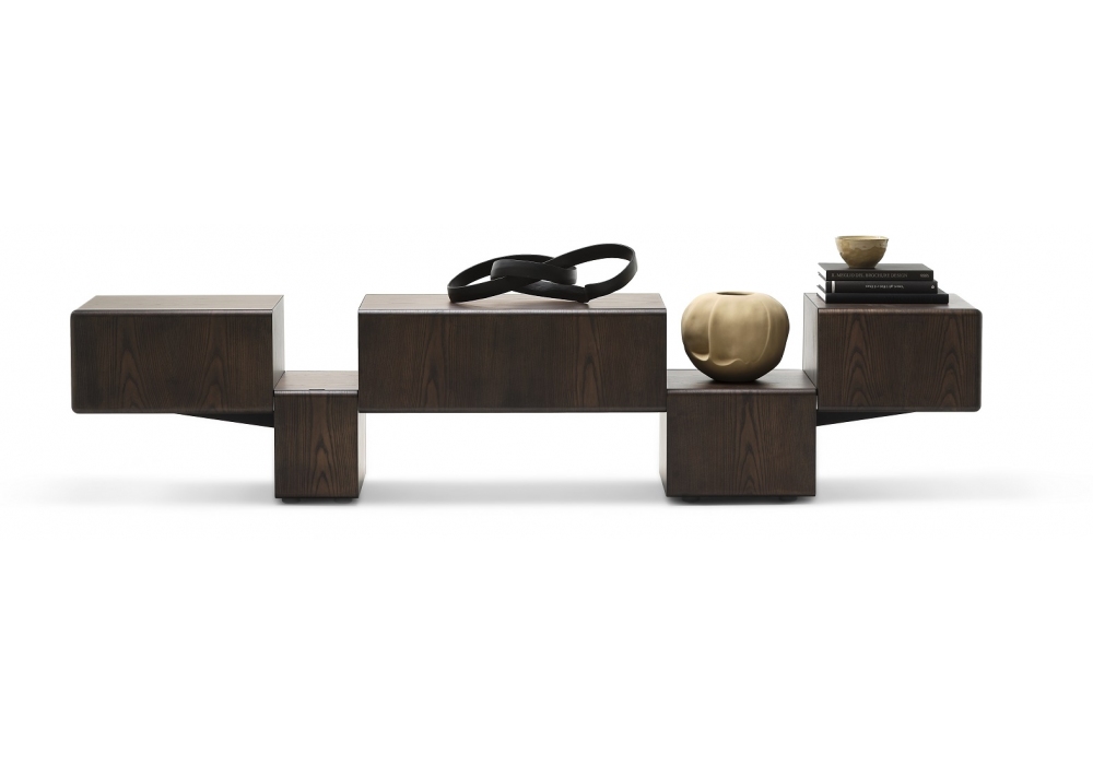 Fractal firmato da Bellavista Piccini per Mogg è un mobile TV con struttura in MDF con una anta a ribalta, predisposto con foro passacavo, e 4 cassetti. Disponibile in frassino tinto moka oppure laccato lucido o goffrato.