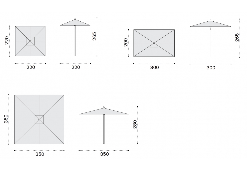 | Dimensioni | 220 x 220 x H 265 cm; 300 x 220 x H 265 cm; 350 x 350 x H 280 cm. |