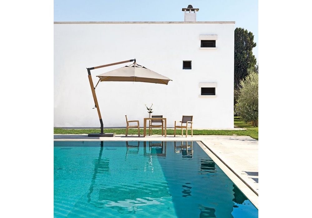 Holiday prodotto e firmato da Ethimo è un ombrellone con struttura portante in legno massello di rovere ed ombrellone in tessuto acrilico. Holiday è disponibile in differenti finiture e dimensioni.