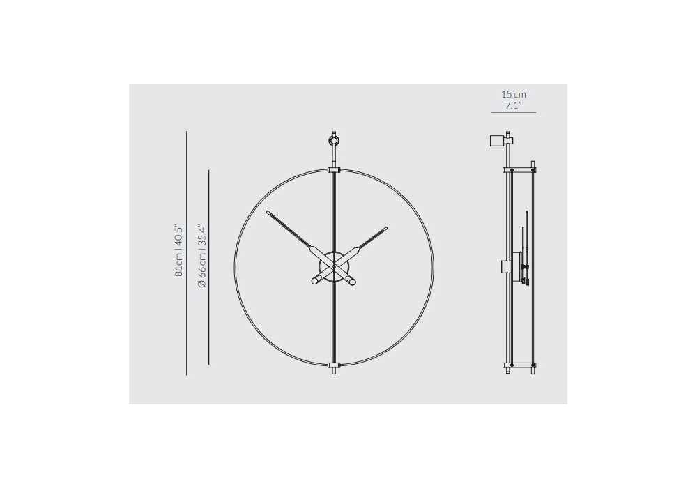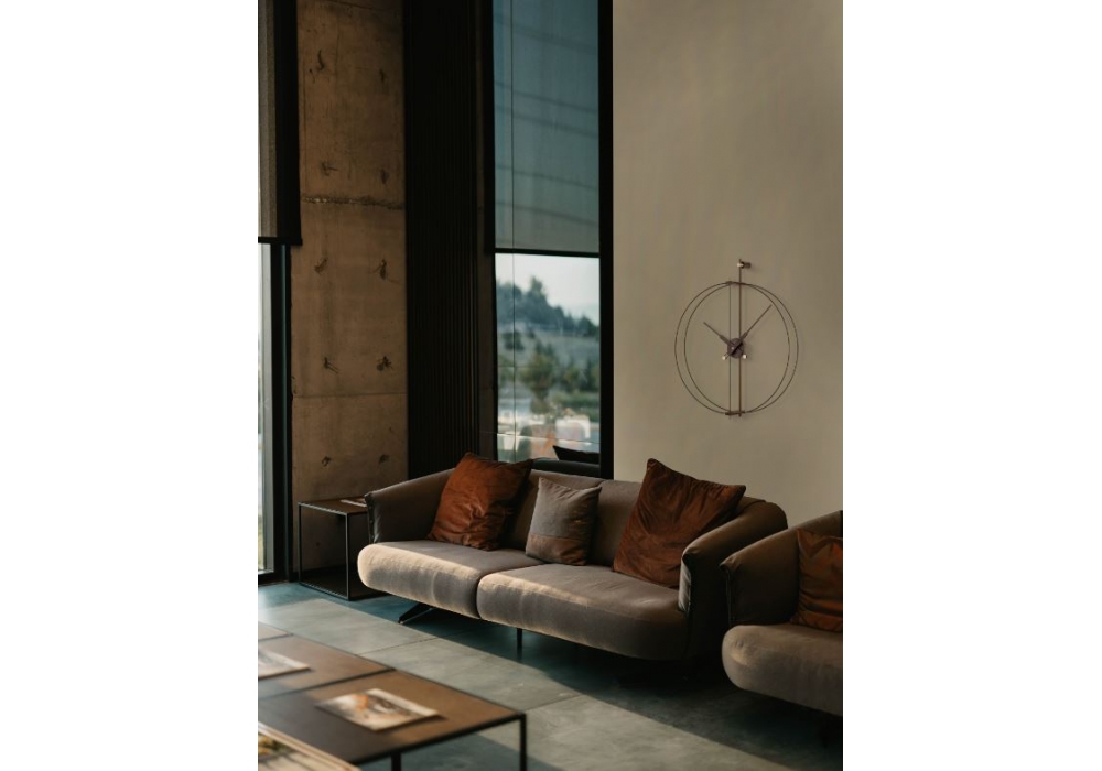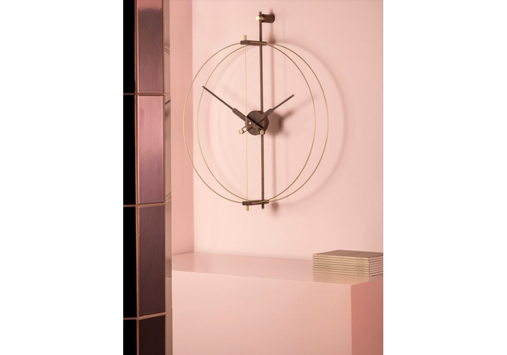 Mini Barcelona Premium firmato e prodotto da Nomon è un orologio con scatola in legno di noce, lancette in legno di noce e ottone lucido. L'anello è disponibile in finitura ottone o fibra di vetro nera.