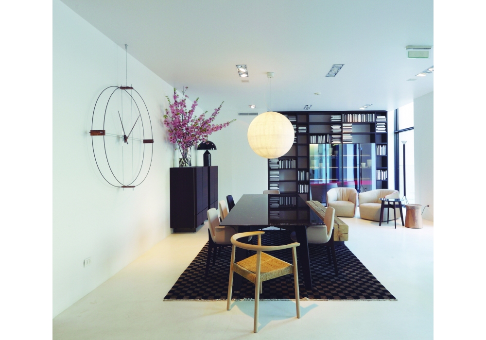 Delmori disegnato e prodotto da Nomon è un orologio con struttura in fibra di vetro nera o bianca, scatola centrale in ottone lucido o cromato, e lancette in noce o wengè.