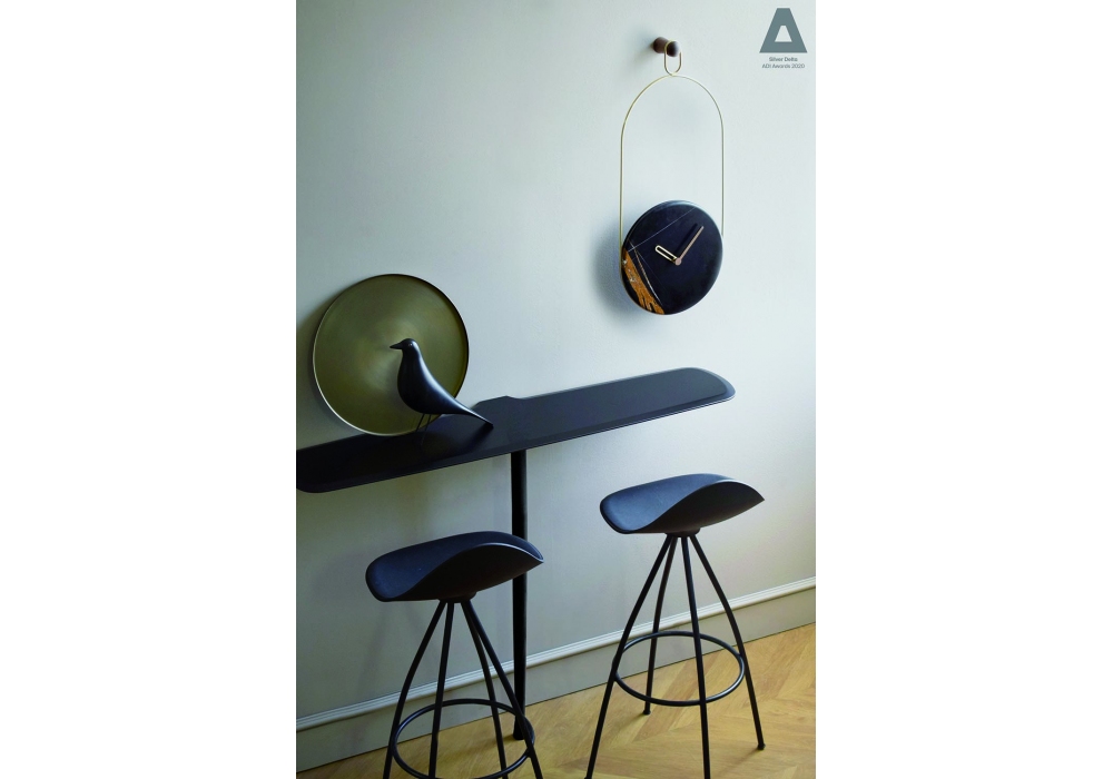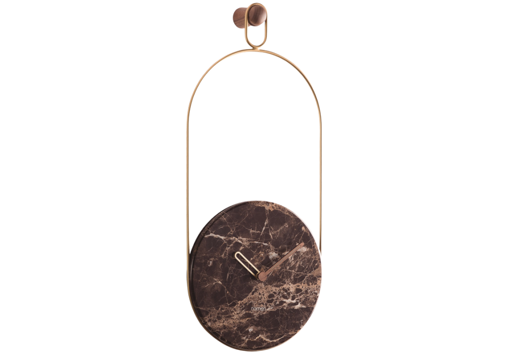 Eslabòn firmato e prodotto da Nomon è un orologio con struttura in metallo e piatto in legno o marmo in diverse finiture.