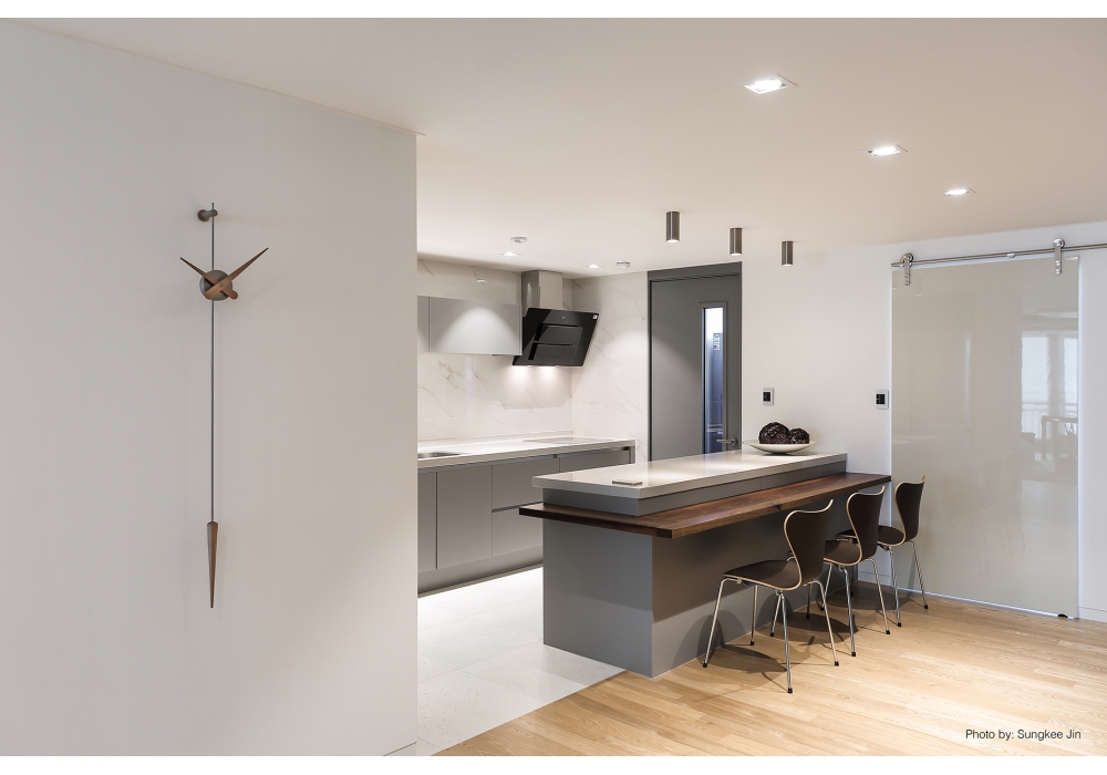 Punto y Coma firmato e prodotto da Nomon è un orologio con lancette e pendolo in acciaio o legno di noce, scatola centrale in ottone cromato, lucido o finitura grafite.