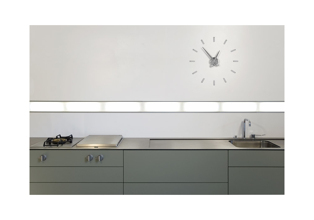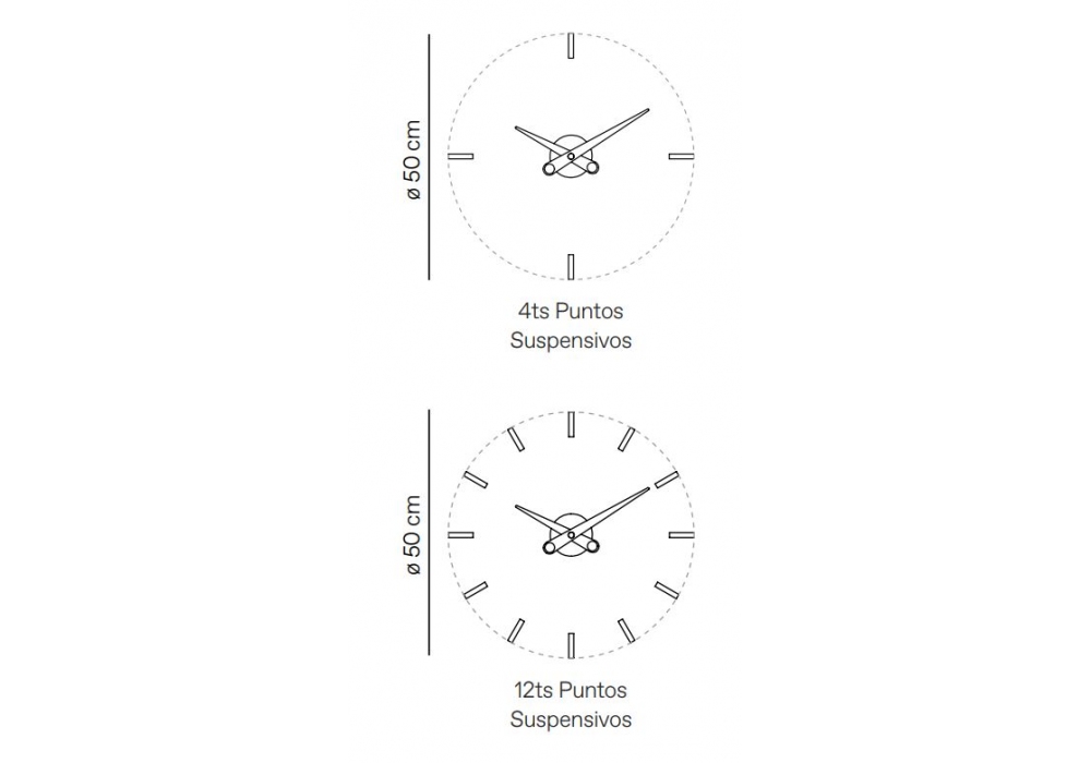 Puntos Suspensivos firmato e prodotto da Nomon è un orologio da parete con 4 oppure 12 segnali orari in ottone cromato e lancette in acciaio inossidabile verniciato in diverse finiture.