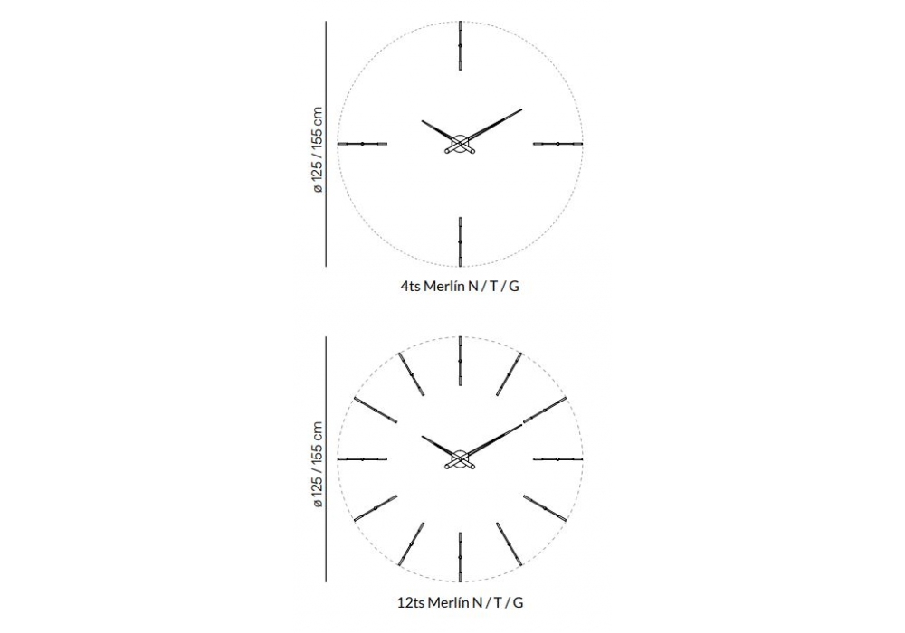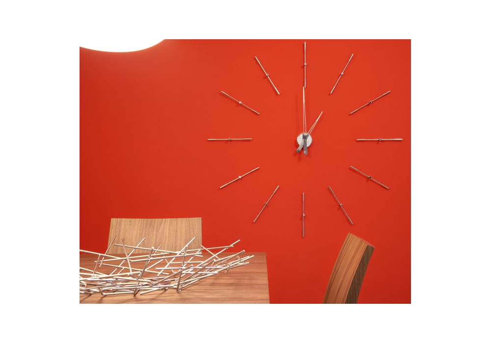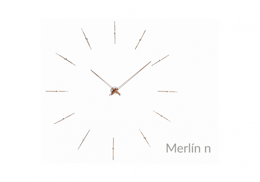 Merlìn N/T/G firmato e prodotto da Nomon è un orologio da parete con 4 oppure 12 segnali orari in ottone cromato o lucido, lancette in legno in diverse finiture.