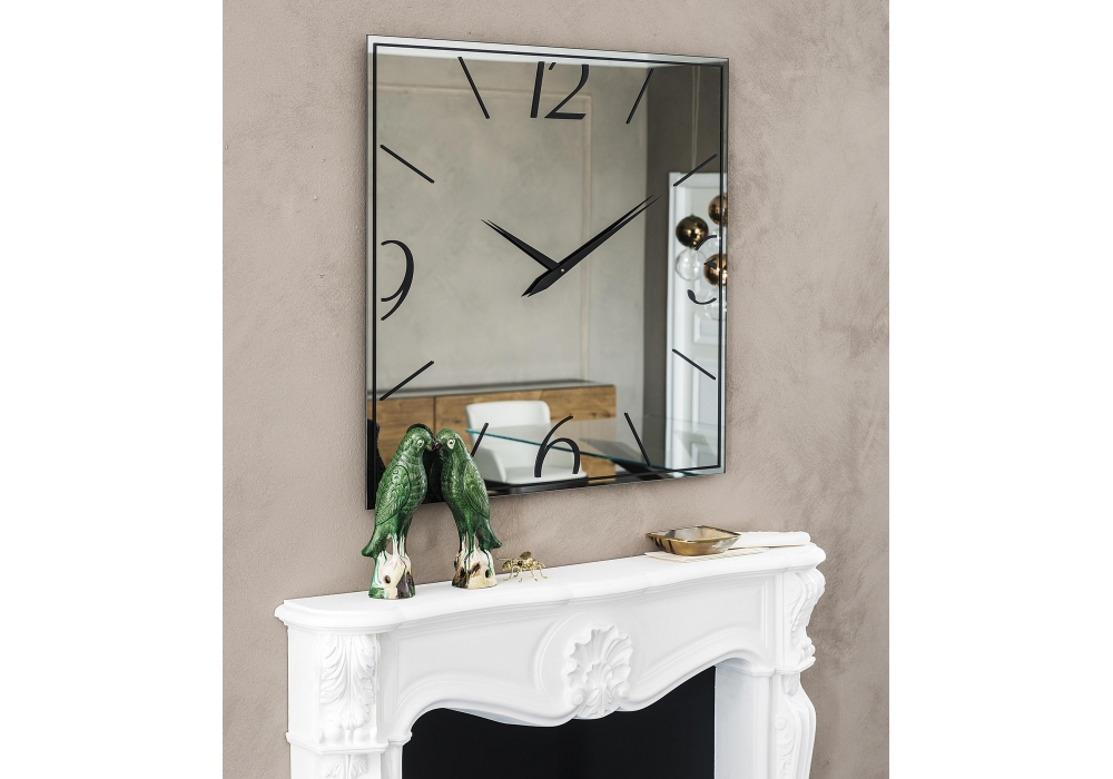 Moment firmato da Brogliato & Traverso per Cattelan Italia è uno specchio/orologio da parete in cristallo specchiato o specchiato fumè con lancette in alluminio nero. Disponibile in versione quadrata o rotonda.