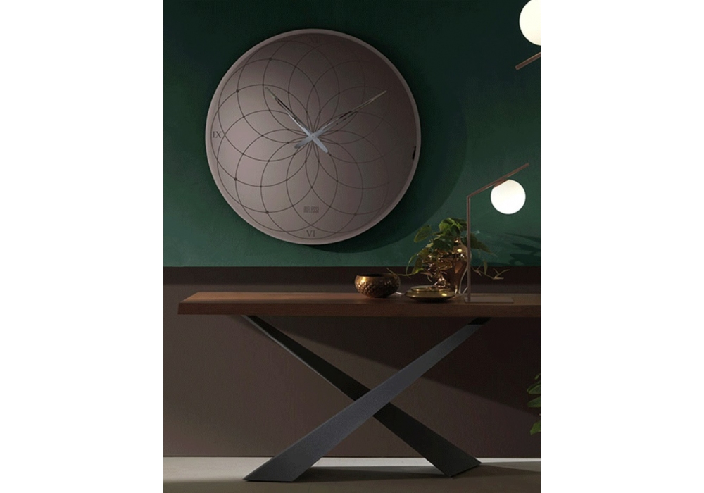 Roma firmato da Riflessi è un orologio da muro realizzato in specchio bronzato serigrafato.