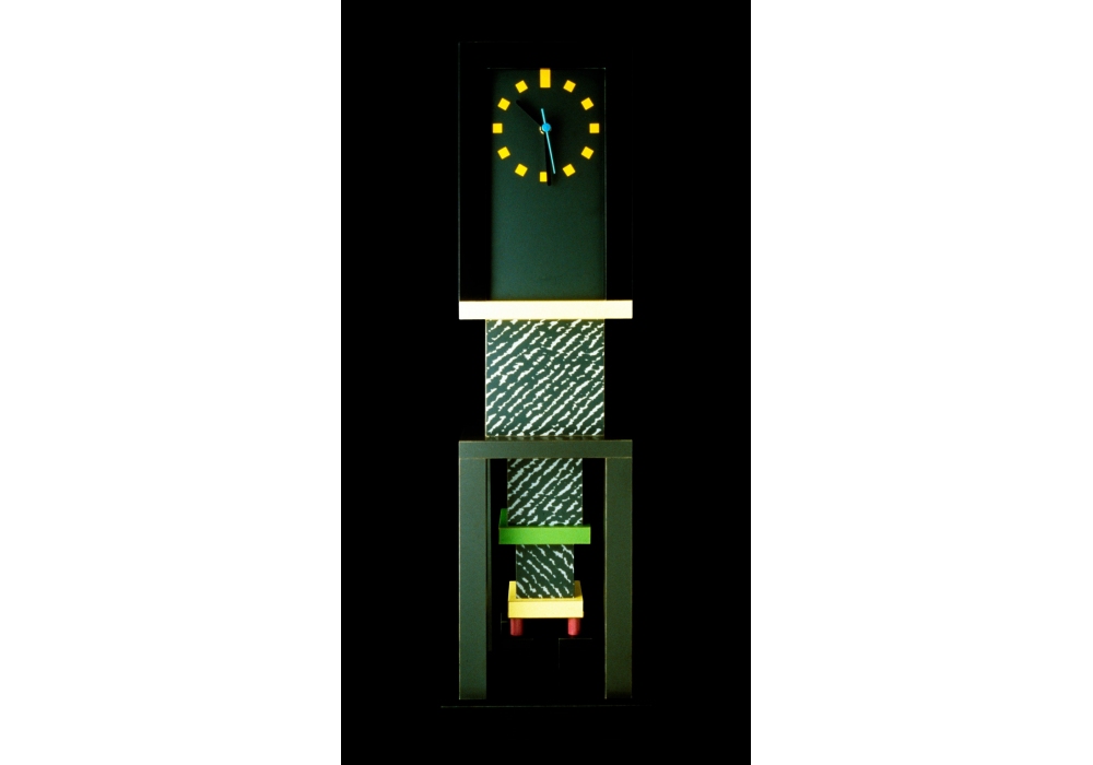 Metropole firmato da George J. Sowden per Memphis Milano è un orologio realizzato in laminato plastico.