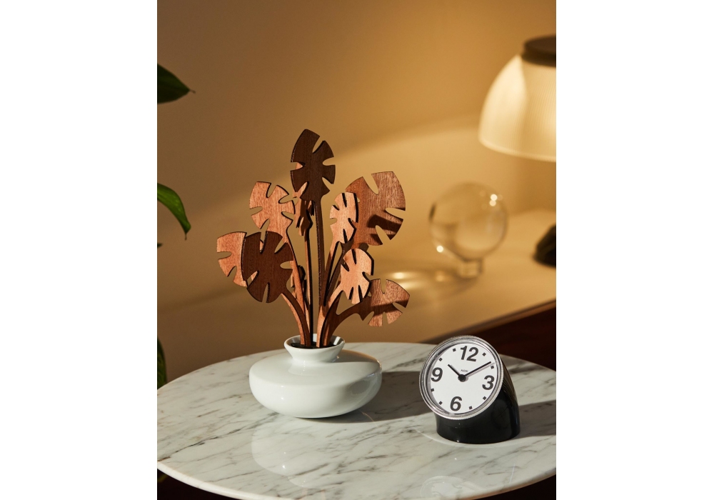 Cronotime firmato da Pio Manzù per Alessi è un orologio da tavolo con movimento a quarzo, realizzato in ABS nero.