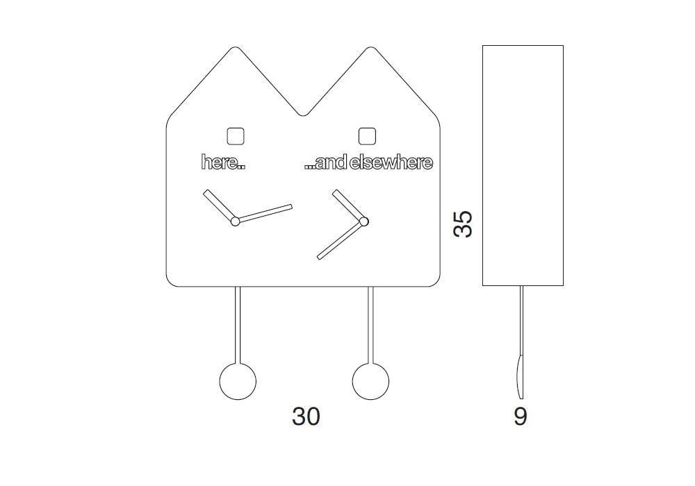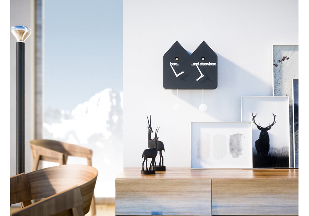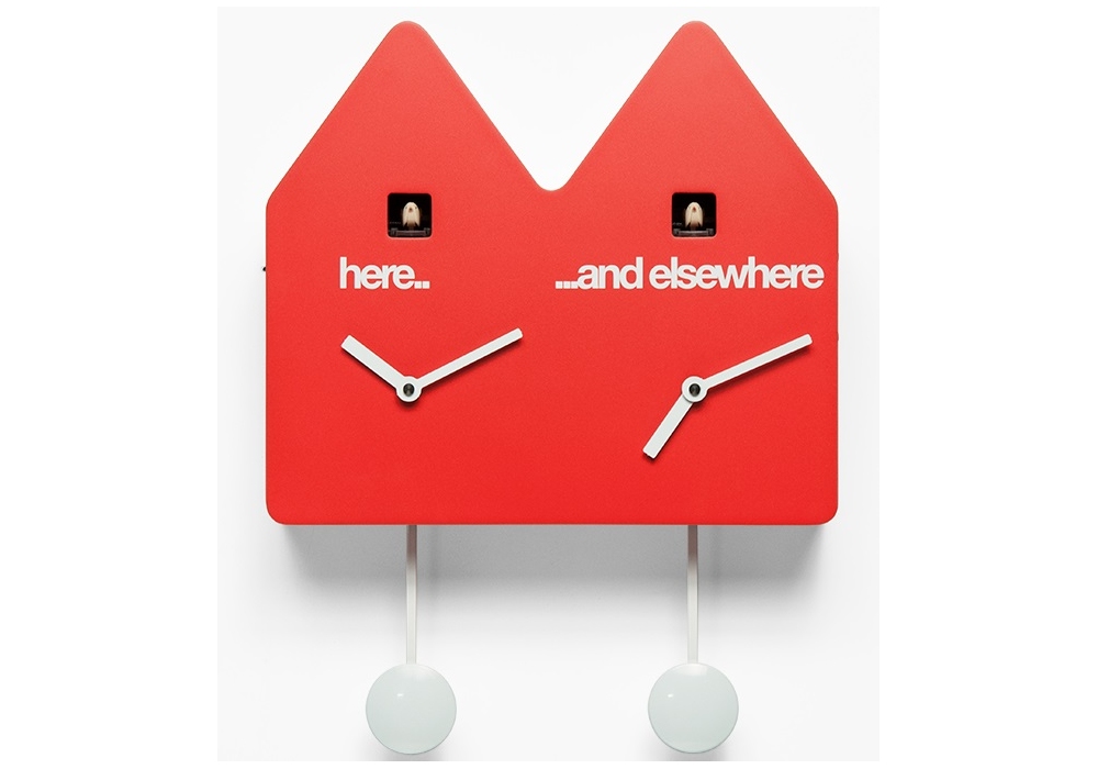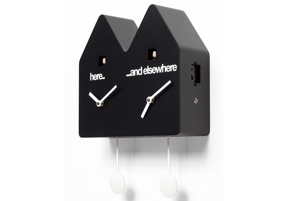 Double Q firmato da Alberto Sala per Progetti è un orologio a cucù realizzato in legno verniciato. Movimenti al quarzo a batteria. Un sensore sensibile alla luce ferma automaticamente la suoneria in assenza di luce.