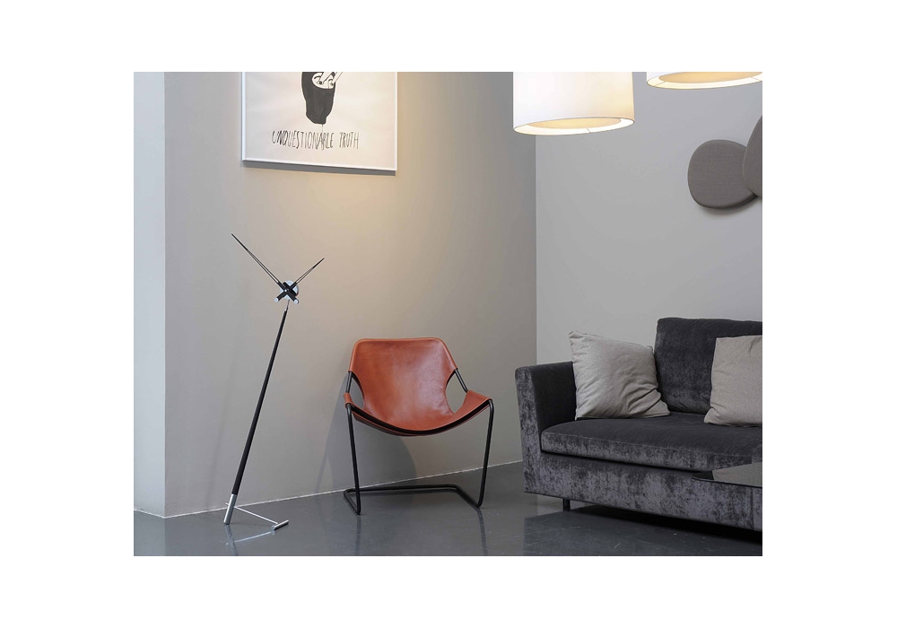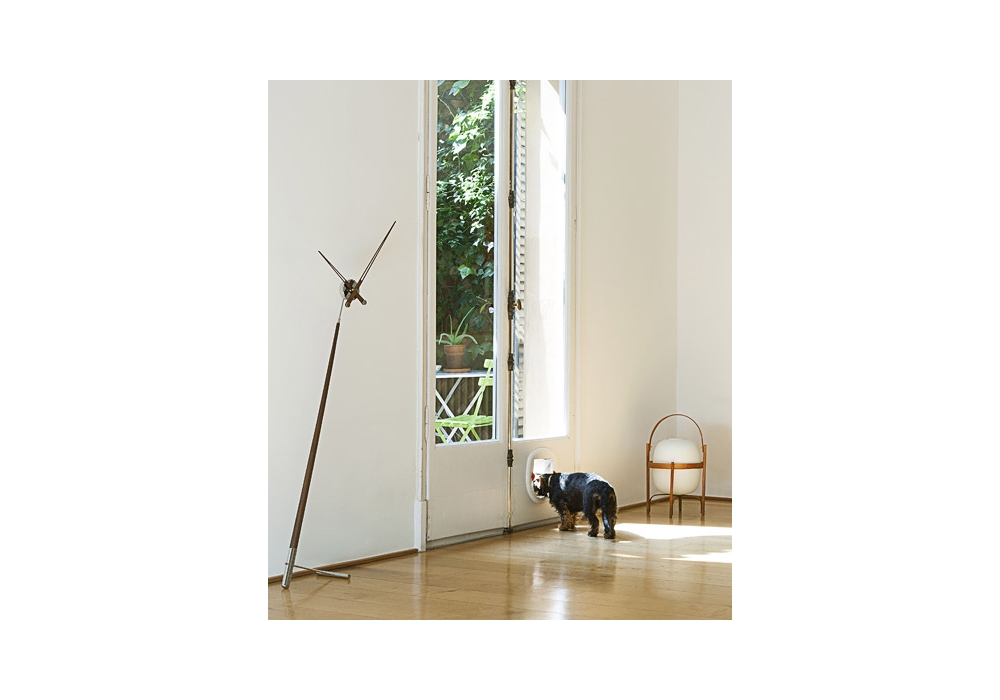Pisa firmato e prodotto da Nomon è un orologio da terra con scatola in ottone lucido o cromato, lancette e corpo in legno di noce naturale o verniciato in diverse finiture.