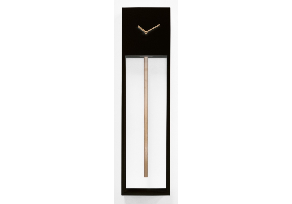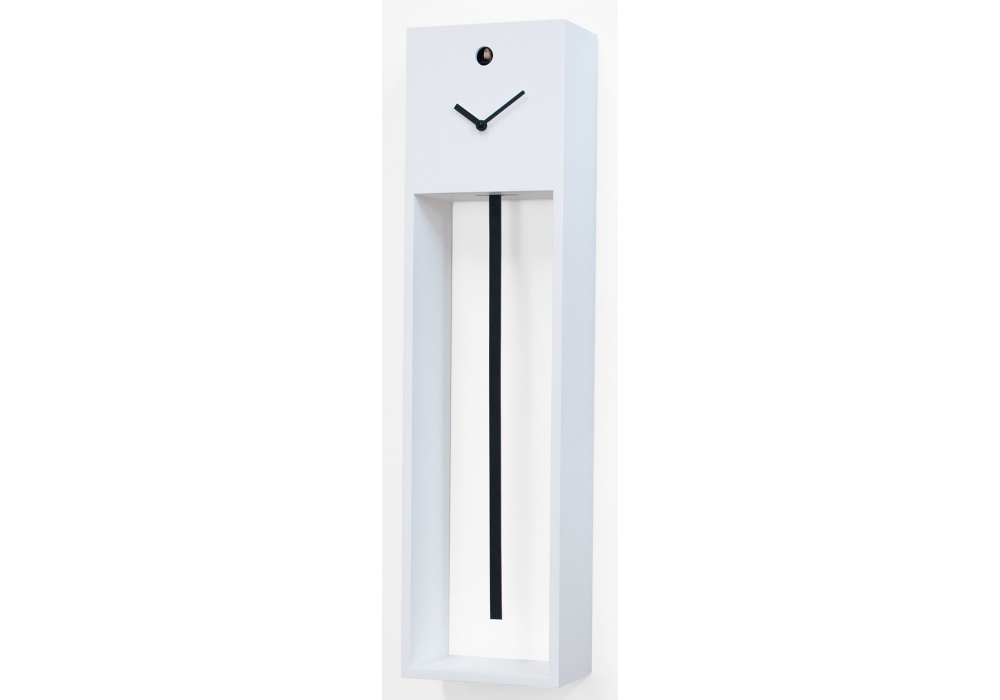 Uaigong firmato da Davide Tonizzo per Progetti è un orologio da parete o a cucù realizzato in legno verniciato. Disponibile con movimento al quarzo a batteria o con movimento a cucù a batteria con sensore fotosensibile che non lo fa cantare quando è buio inoltre una pulsantiera permette di regolare l'intensità del suono o di spegnerlo del tutto. Disponibile in differenti finiture.