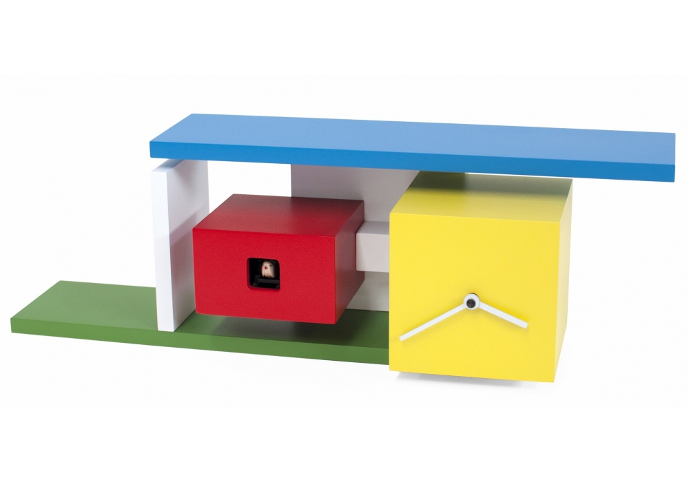 Mies firmato da Barbero Design per Progetti è un orologio a cucù da tavolo o parete realizzato in legno verniciato con vernici atossiche. Il movimento a cucù a batteria di progettazione tedesca ha un sensore fotosensibile che non lo fa cantare quando è buio inoltre una pulsantiera permette di regolare l'intensità del suono o di spegnerlo del tutto.