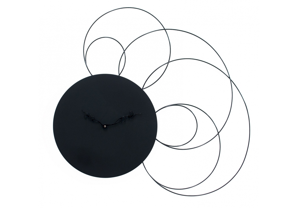 Liberty firmato da Eloisa Libera per Progetti è un orologio da parete costituito da anelli realizzati in filo di Nylon che si raccordano al quadrante rotondo in legno verniciato nero. Realizzato con legno ecologico e vernici atossiche utilizza un movimento a batteria di produzione tedesca.