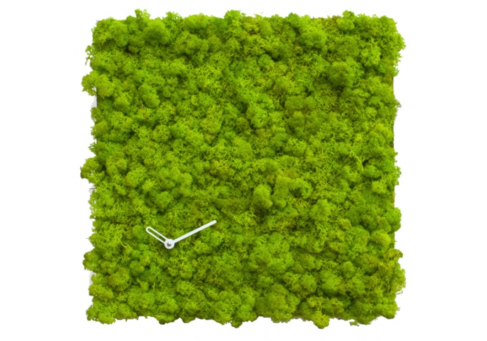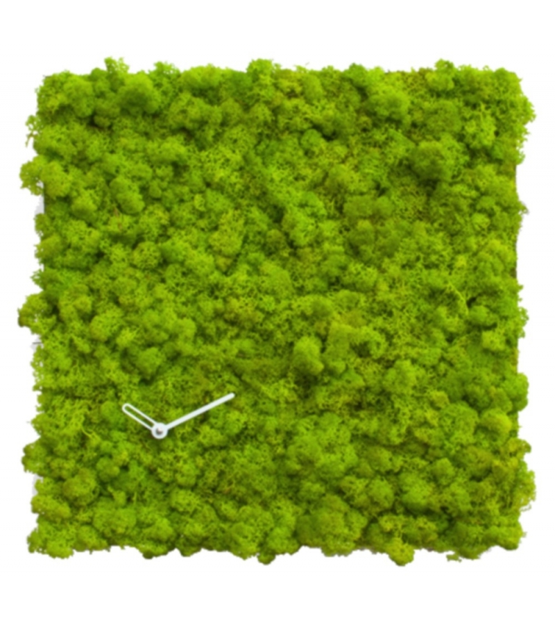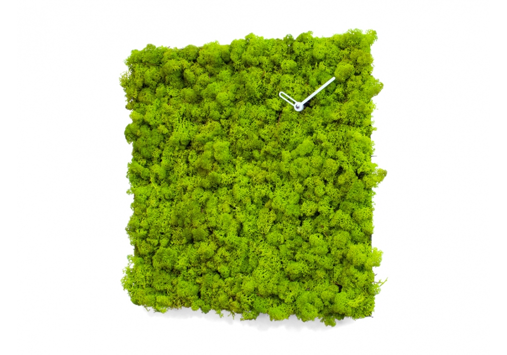Clock_Circle firmato da Srudio Kuadra per progetti è un orologio quadrato realizzato in acciaio e lichene Moss di Verde Profilo. Movimento al quarzo a batteria. É possibile appendere l'orologio da tutti i lati.