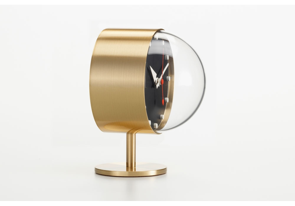Vitra Night Clock: Gli orologi di George Nelson sono costruiti con i materiali più disparati e realizzati nelle forme scultoree più diverse, gli orologi rispecchiano la gioia di vivere degli anni 1950. Gli originalissimi orologi da tavola sono ancor oggi una gradevole alternativa agli orologi classici. Vitra Design Museum Collection. Materiali: ottone, vetro acrilico, poliuretano, legno di noce. Specifiche di fornitura: prezioso meccanismo al quarzo inclusa batteria da 1,5V.