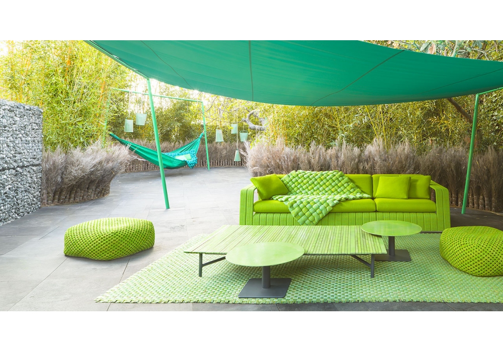 Nesso firmato da Francesco Rota per Paola Lenti è un tavolo con base in alluminio verniciato opaco (avorio o grafite) oppure lucido, in diverse finiture. Il piano è in Luce, realizzato a mano dal maestro Nicolò Morales, e può essere unico o composto alternando elementi di due dimensioni.