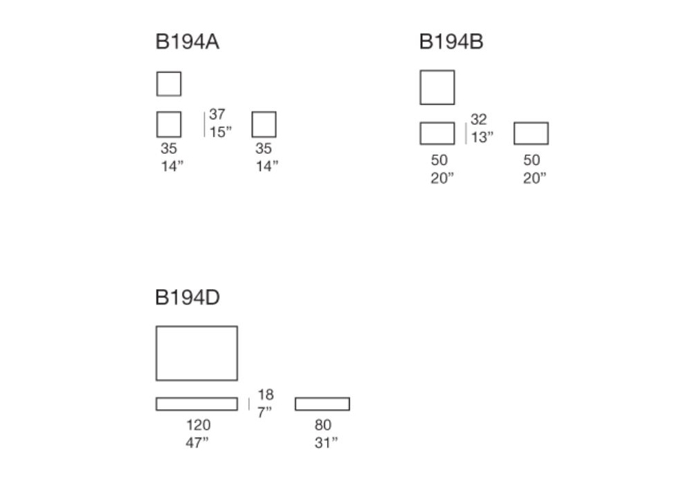 | Dimensioni | 35 x 35 x H 37 cm; 50 x 50 x H 32 cm. 100 x 100 x H 18 cm; 120 x 80 x H 18 cm. |