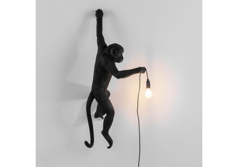 The Monkey Left Hand Lamp firmata da Marcantonio Raimondi Malerba per Seletti è una lampada da parete realizzata in resina nera sorretta da un apposito ancoraggio a parete. La sorgente luminosa adottata è di tipo LED a filamento alimentata da un cavo in materiale plastico.