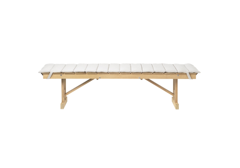 BM1871 firmato da Børge Mogensen per Carl Hansen & Søn è una panca da esterno con struttura in legno massello in finitura teak, cuscino imbottito opzionale, disponibile in Heritage Papyrus 18006.