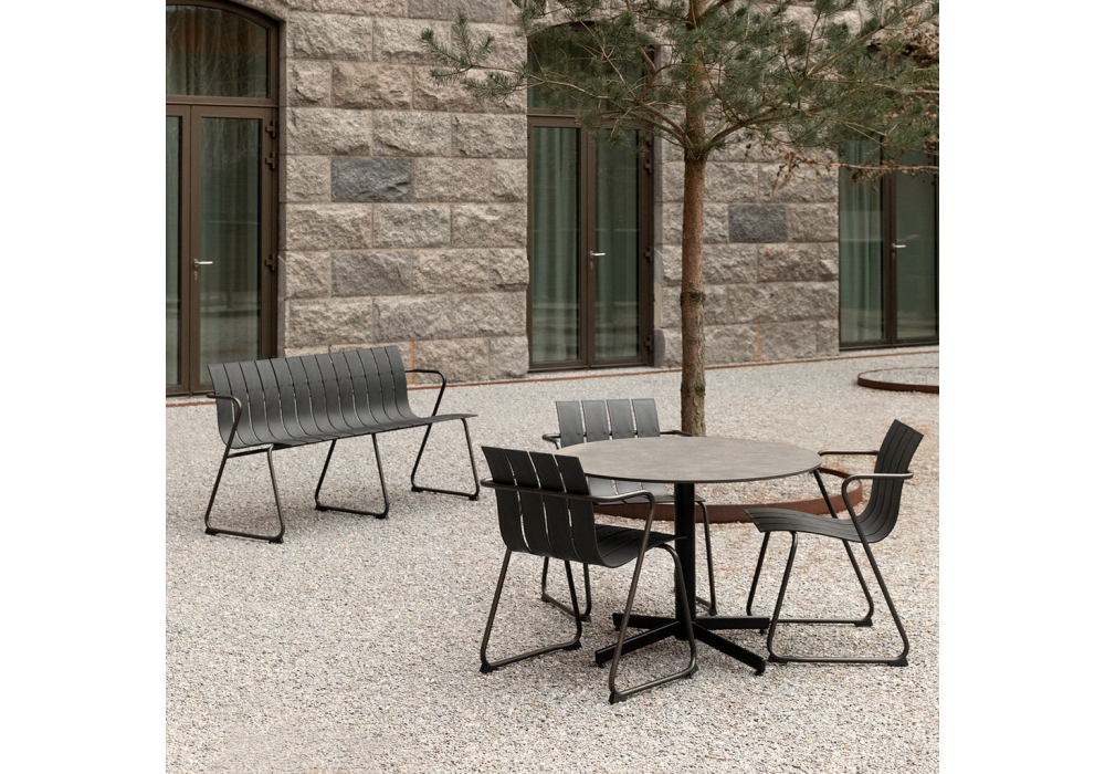 Ocean firmata da Joergen e Nanna Ditzel per Mater è una panca da esterno della collezione Ocean. È realizzato con telaio in tubo di acciaio finitura canna di fucile e scocca in lamelle di plastica riciclata.
