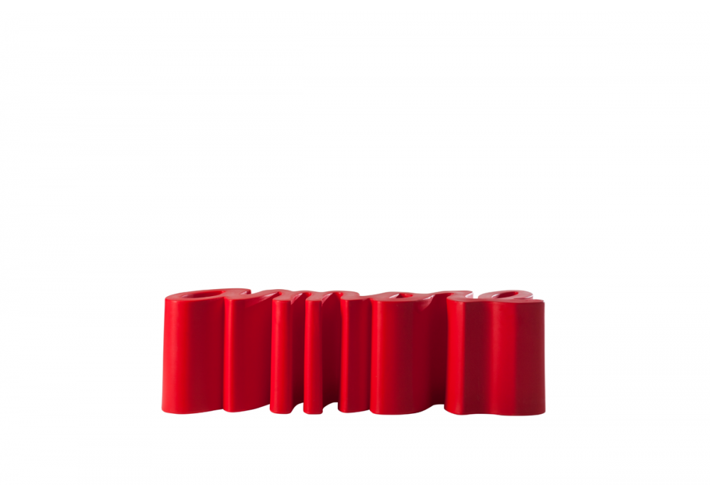 Amore firmata da Giò Colonna Romano per Slide è una panca dal forte impatto visivo dove una parola diventa un elemento progettuale e si materializza. Disponibile in differenti finiture