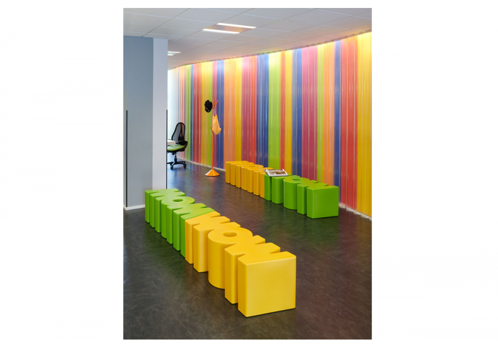 Wow firmata da Kazuko Okamoto per Slide è una panca dallo spirito pop e dal design calligrafico. Il design calligrafico di WOW è “palindromo”: girando la panchina sottosopra, infatti, WOW crea la scritta MOM. Disponibile in differenti finiture