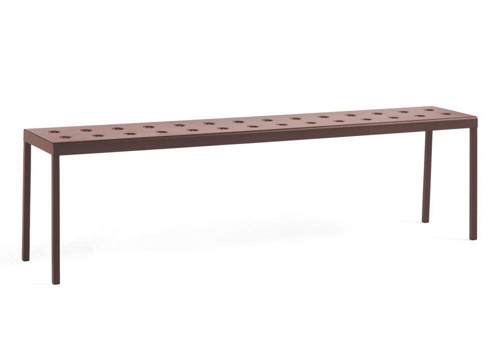 Balcony firmata da Ronan & Erwan Bourollec per Hay è una panca da esterno realizzata in acciaio verniciato a polvere con rivestimento bicomponente; un primer e un rivestimento in polvere per esterni che fornisce una barriera agli elementi corrosivi, rendendolo adatto all'uso esterno. Disponibile in diverse finiture. Su richiesta è possibile aggiungere un cuscino seduta.