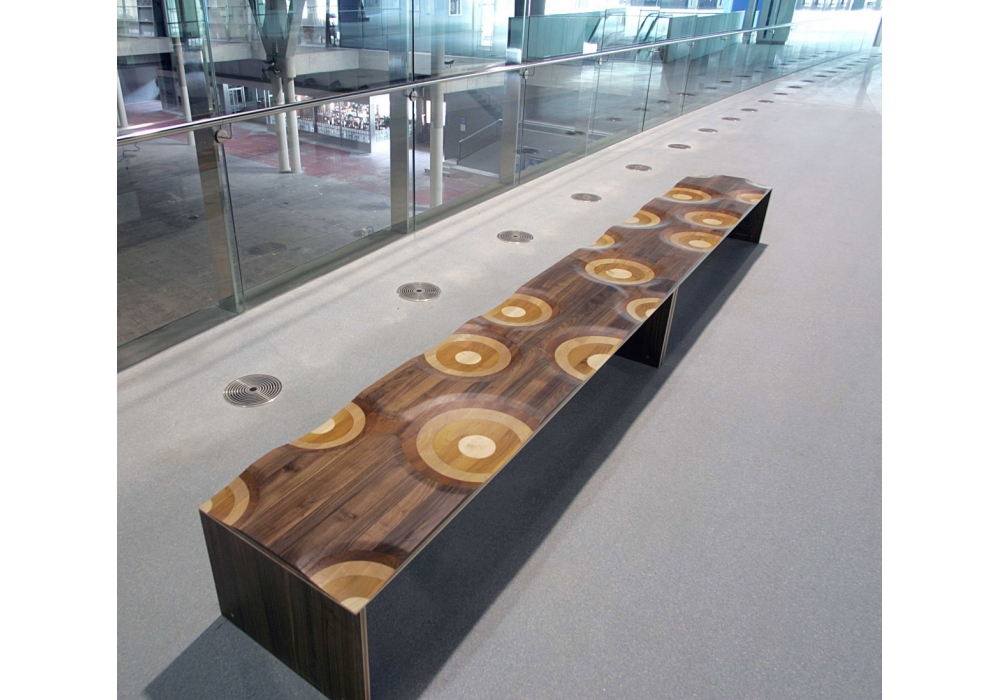 Ripples firmata da Toyo Ito per Casamania & Horm è una panca realizzata con uno speciale ed esclusivo multistrato di cinque differenti essenze di legno (noce canaletto, mogano, ciliegio, rovere e frassino). Seduta rinforzata con una barra metallica nascosta.