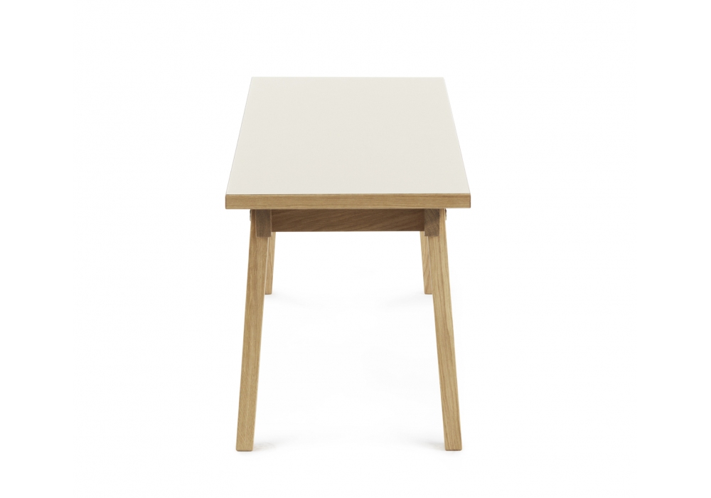 Slice, firmata da Hans Hornemann per Normann Copenhagen è una panca, interamente realizzara in legno di rovere con piano in linoleum. Il linoleum essendo un prodotto naturale presenta proprietà antibatteriche e autorigeneranti, con una superficie vellutata, morbida e piacevole al tatto e grazie alla resistenza dei materiali, perfetta per un uso frequente. Slice è disponibile in differenti finiture.