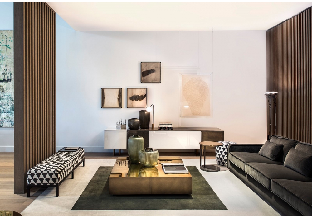 Berry firmata da Andrea Parisio per Meridiani è una panca con imbottitura in poliuretano indeformabile. Rivestimento disponibile in tessuto o pelle. Basamento in legno di rovere tinto black.
