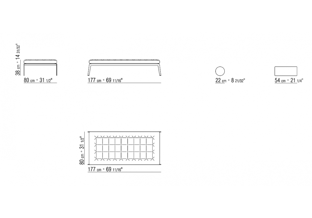 | Dimensioni | • 177 x 80 x H 38 cm |