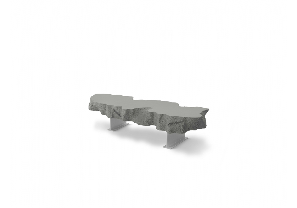 Broken Bench firmata da Snarkitecture per Gufram è una panca con seduta imbottita in poliuretano espanso, con rivestimento in tessuto che ricorda le tonalità del cemento. Per ottenere tale effetto viene applicata interamente a mano la speciale vernice brevettata Gufram, Guflac®, consentendo al poliuretano di mantenere la sua elasticità.