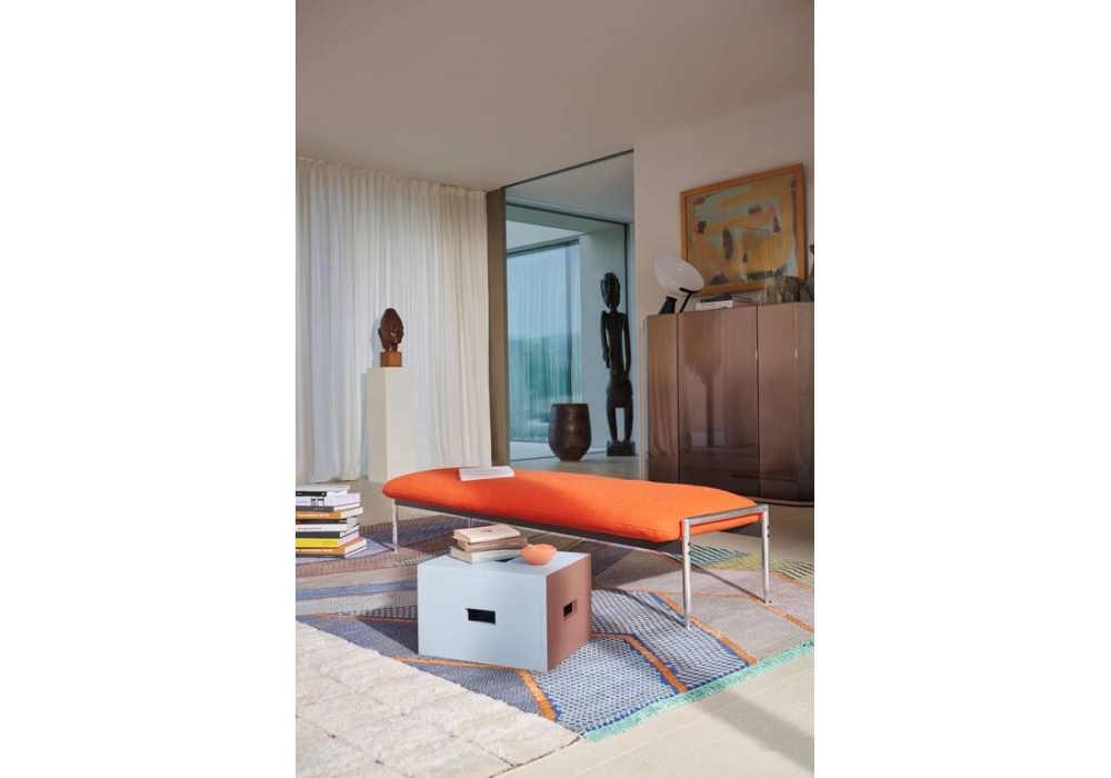 Esosoft firmato da Antonio Citterio per Cassina è una panca realizzata con struttura in alluminio, rivestimento in tessuto e imbottitura in poliuretano espanso con una percentuale di origine biologica e ovatta di PET riciclato. Disponibile in diverse finiture e dimensioni.