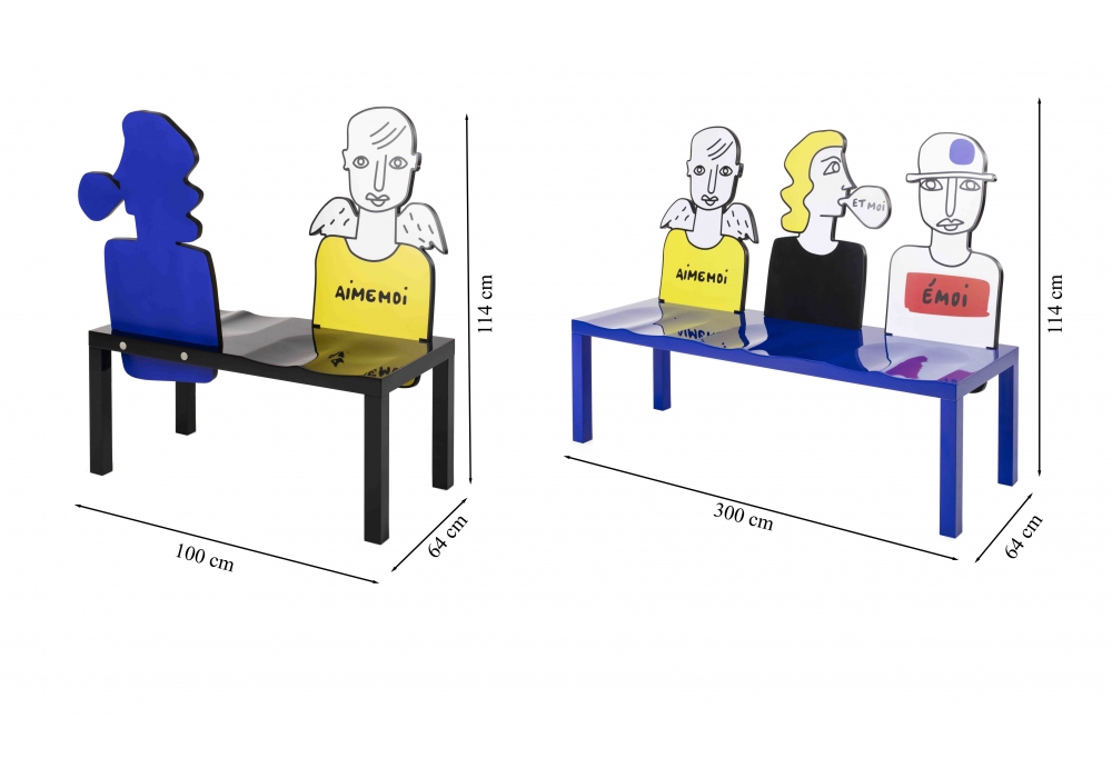 Human Conversation firmata da Jean Charles de Castelbajac per Maison Dada è una panca con gambe in massello di faggio e seduta in MDF con anima interna in metallo. Lo schienale è in MDF sagomato. Human Conversation è disponibile in differenti modelli e finiture.