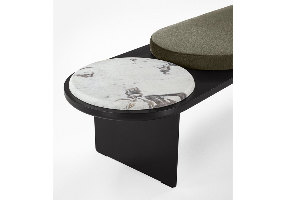 Sensei firmata da Staffan Tollgard & Filippo Castellani per Gallotti&Radice è una panca con struttura in metallo e piano in legno laccato “deep black”. Sul top cuscino in poliuretano espanso altezza 6 cm rivestito in tessuto o in pelle nei colori del campionario. Rivestimento non sfoderabile. Piano di appoggio in cristallo nella finitura esclusiva “Rosso Marte” oppure retroverniciato brillante nei colori del campionario. Disponibile anche in marmo 20mm Calacatta Vagli Oro lucido naturale, Ceppo di Gré® spazzolato, Arabescato Orobico Rosso satinato, Bianco Carrara Gioia spazzolato oppure Dover White satinato.