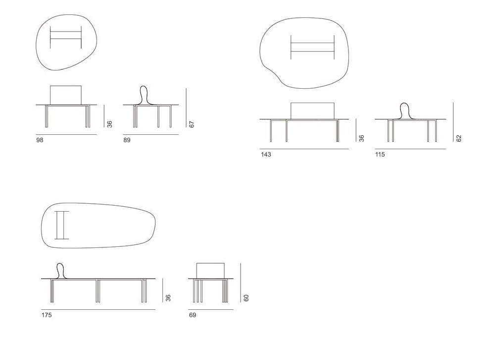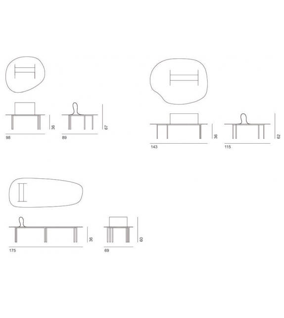 | Dimensioni | • 98 x 89 x H 67 cm; • 143 x 115 x H 62 cm; • 175 x 69 x H 60 cm |