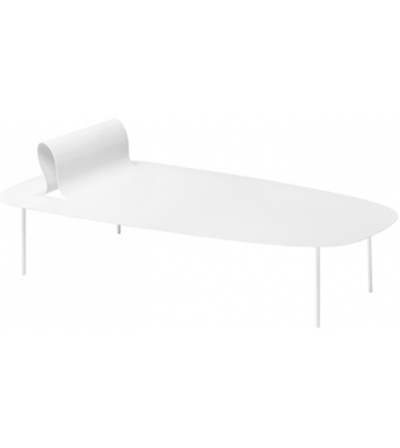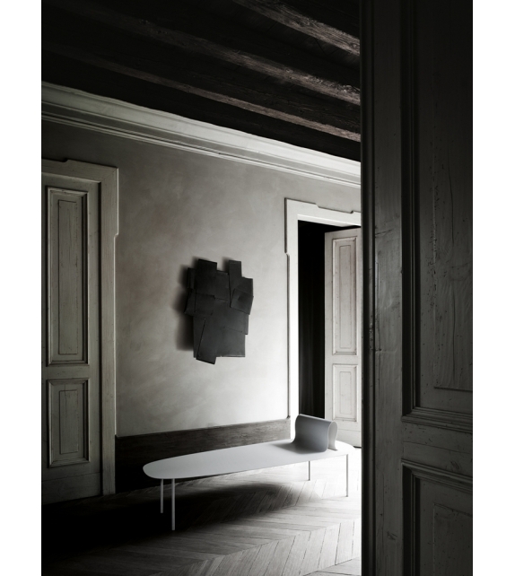 Softer Than Steel 687 firmata da Nendo per Desalto è una panca realizzata in lamiera con schienale curvato e gambe in tondino d'acciaio. Disponibile in diverse finiture e dimensioni.