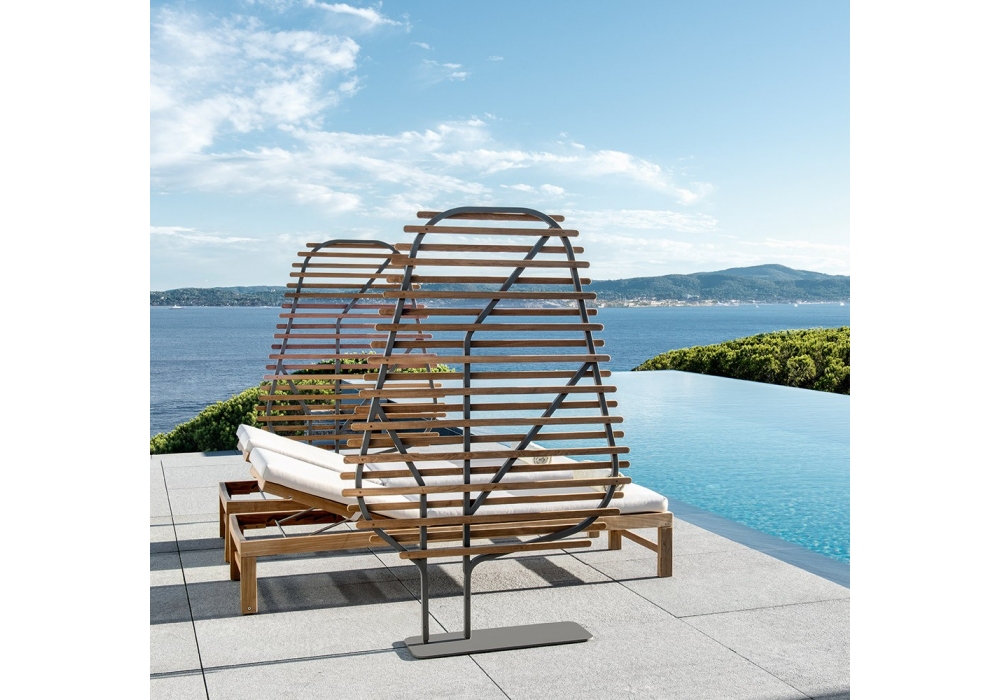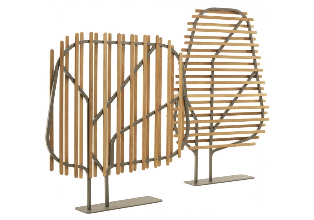 Clostra firmato da Emmanuel Gallina per Ethimo è un separè da giardino, realizzato in metallo verniciato e teak naturale. Un'originale schermatura per esterni che ricorda arbusti stilizzati. Disponibile in differenti modelli e dimensioni.