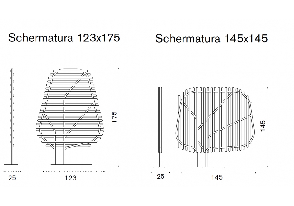 | Dimensioni | 123 x 25 x H 175; 145 x 25 x H 145. |
