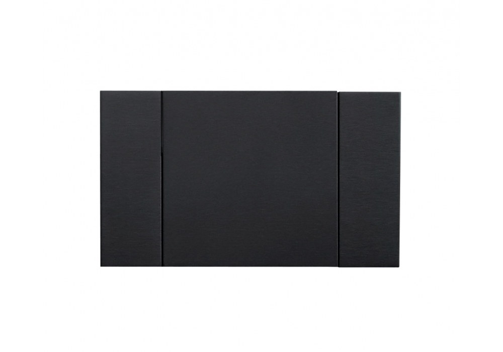 Sen firmato da Gwenael Nicolas, Curiosity per Agape è un comando a parete per soffione o per bocca di erogazione vasca in alluminio anodizzato spazzolato con finitura nera.