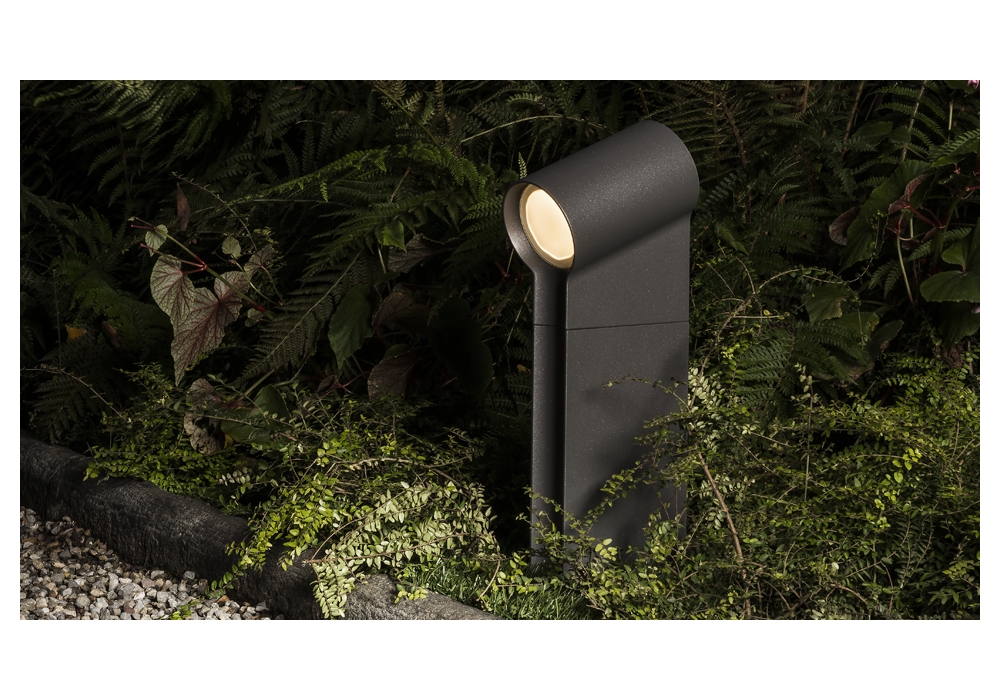 Oblique firmata da Arik Levy per Artemide è una lampada da terra per esterni interamente realizzata in alluminio verniciato grigio antracite. La sorgente luminosa adottata è di tipo LED. Oblique viene fornita completa di alimentazione elettronica e picchetto per il fissaggio al terra.