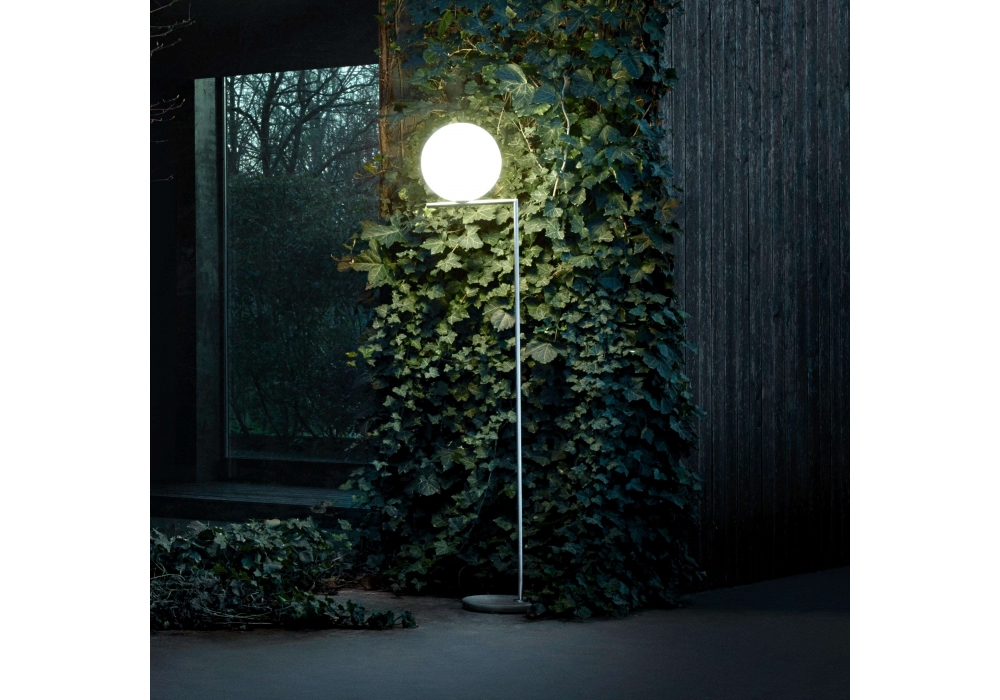 IC F2 firmata da Michael Anastassiades per Flos è una lampada da terra per esterni con base di forma circolare in marmo o pietra e stelo verticale in acciaio inox. Sorgente luminosa esclusa. Interruttore dimmer a pedale retroilluminato IP65 lungo il cavo che garantisce le funzioni ON/OFF e regolazione del flusso luminoso 30-100% (con lampadina a LED Dimmerabile).